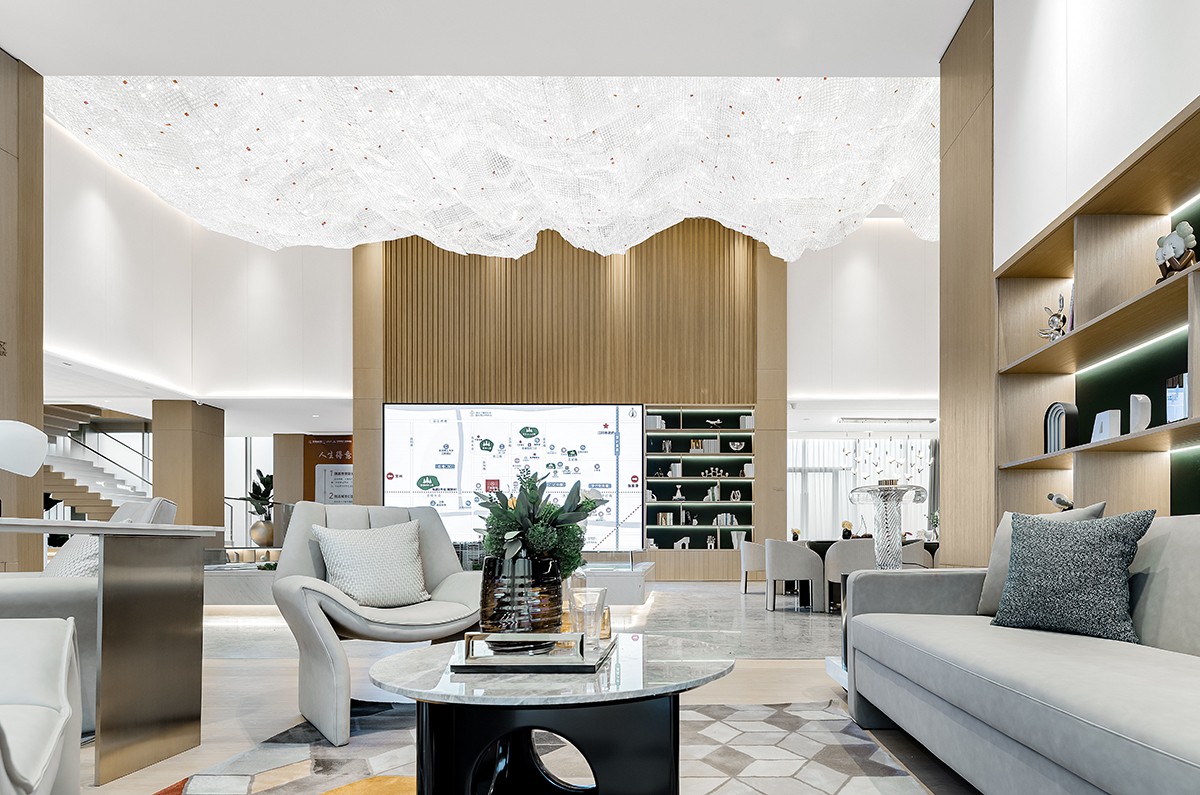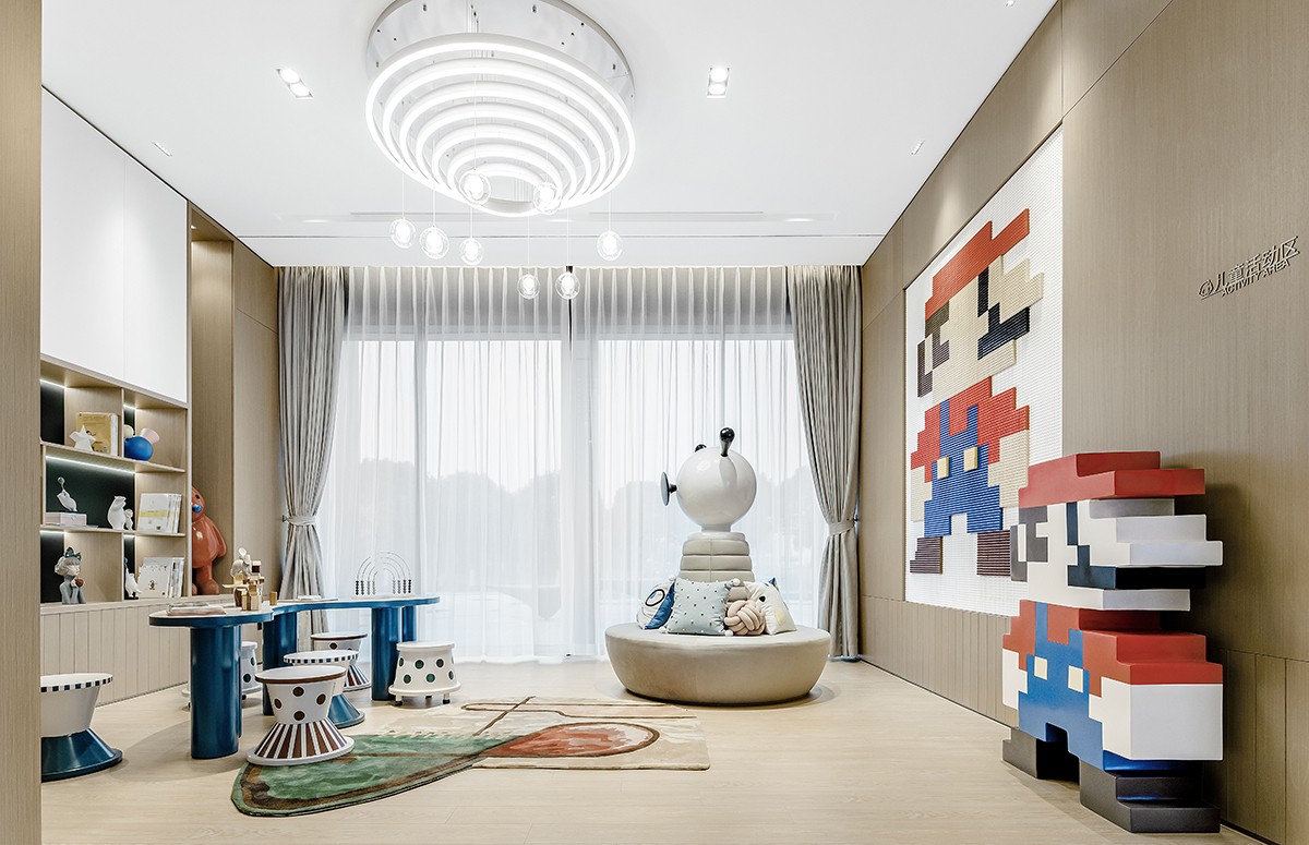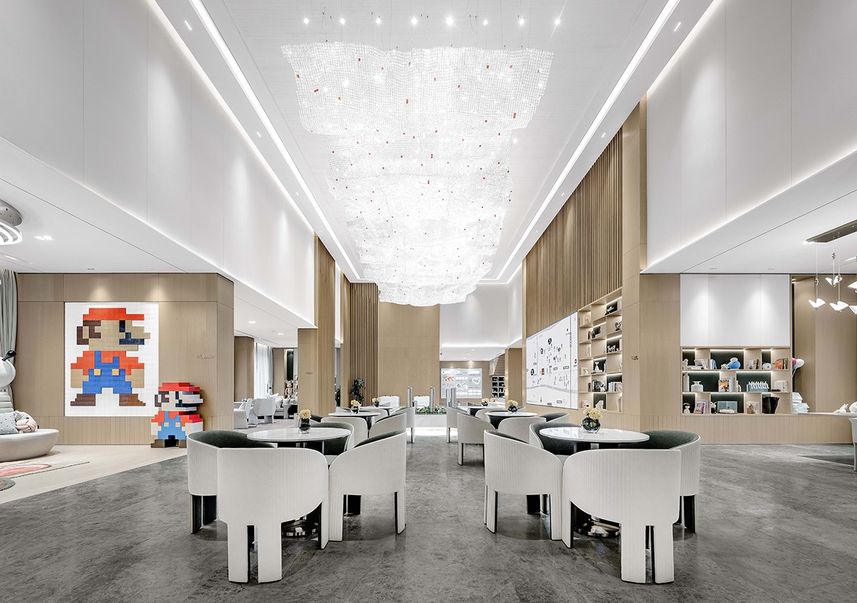 項目從建築到室內,整體色調(diào)延(yán)續現代時尚的設計風格。層層漸進的空間之下,融(róng)粹當代藝術與時尚潮流,延續生態自然,以潮(cháo)玩營造出空(kōng)間的戲劇張力。