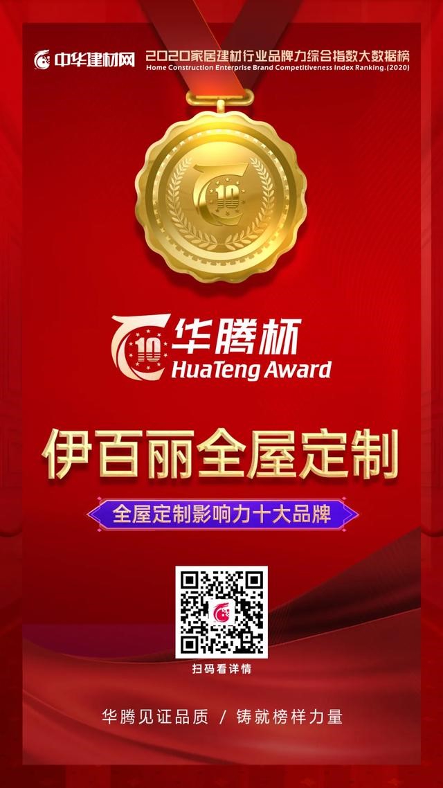 9月1日,中華建(jiàn)材網傾(qīng)力打造的2020“華騰(téng)杯”家居建材行業品牌力(lì)綜合指數(shù)大數據榜公布,伊(yī)百麗全屋定製榮膺“2020全屋定製影(yǐng)響(xiǎng)力十大品牌”稱號(hào)!