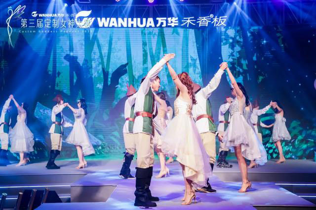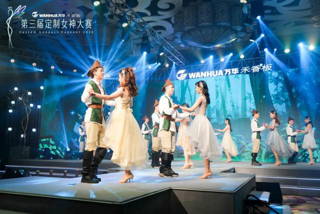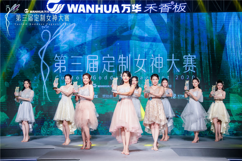 在以綠色森林為(wéi)背景的(de)舞台上,定製女神們攜手精靈男舞伴身著禮服,踏著七彩霞光而來。伊(yī)百麗女神(shén)朱曉萍手捧(pěng)“十強女神”獎杯,以曼妙的(de)身姿踏上舞台中央,成功C位出(chū)道!