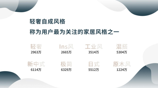 目前中國家庭戶均擁有1.5套住房,隨著國家放開二孩政策,中國房地產進入到改善型住房階段!同時隨著智能家居的興起和短視頻傳播的推(tuī)波助瀾,自2019年起市場上悄(qiāo)然興(xìng)起輕奢風尚,據巨量引擎發布《2020輕奢定製白皮書》顯示,輕奢已經(jīng)自成風格,且已成為大眾最為關注的家居風格之一(yī)。根據《2018中國新興中(zhōng)產階層財富白皮書》研究顯(xiǎn)示,家庭年收入在30萬以上的人群占比41%,而且當下的消費者也更願意(yì)也(yě)更有能力為“好設計”買單。在針對國(guó)內一二線(xiàn)城市的20-49歲家居消(xiāo)費決策者的調查中發現,新生代消費者未(wèi)來一年的裝修預算平均達25.4萬元,其中願意付出10-30萬元裝修預(yù)算的人(rén)數占(zhàn)比為56.3%,可見人們的家居(jū)消費能力也隨著對(duì)美好生活的向往而增(zēng)加。同(tóng)時在全部定製行業中逐漸細分出“輕奢定製”這一子類,從而形成高端定製、輕奢定(dìng)製、全屋定製等高中低分層。高定的客單值達到30萬以上目(mù)標人群主要是社會精英階層,輕奢定製的客單值在10-30萬之間主要目標人群是中產階級家庭,而全屋定製的客單值(zhí)在(zài)3-10萬之間目標人群主要是工薪階層。輕(qīng)奢定製已經成為可豪可親的一個新賽道!