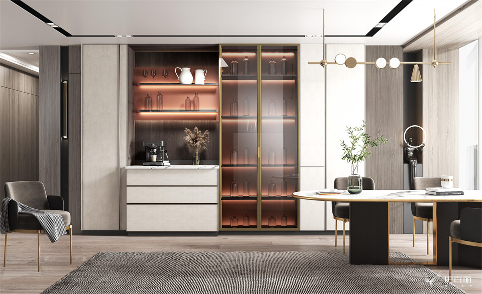 安穩平和的極簡(jiǎn)生活,實現美好與功用的完美平衡,沉穩的鳳凰木櫃身與簡潔明快的門板搭配,高檔時尚又靈動,輕奢質感盡顯。