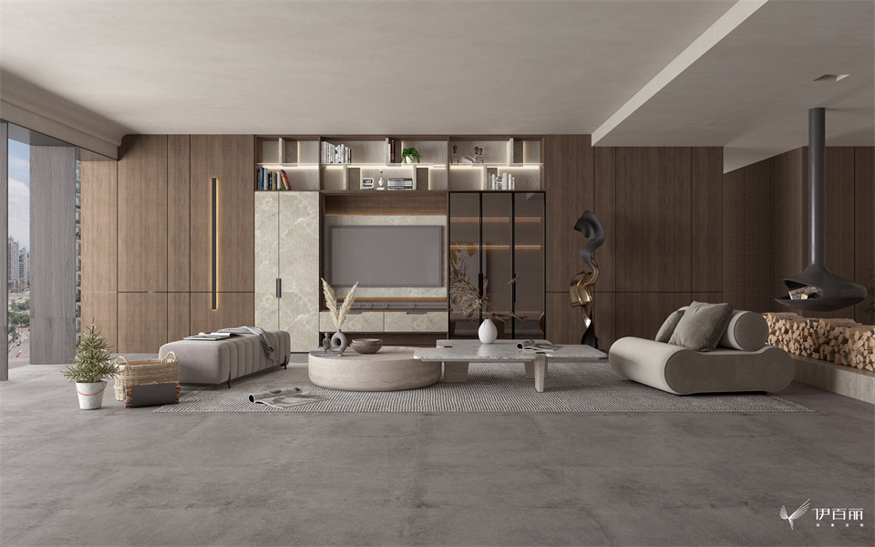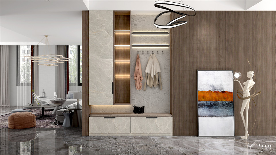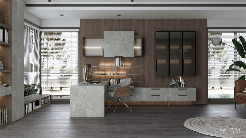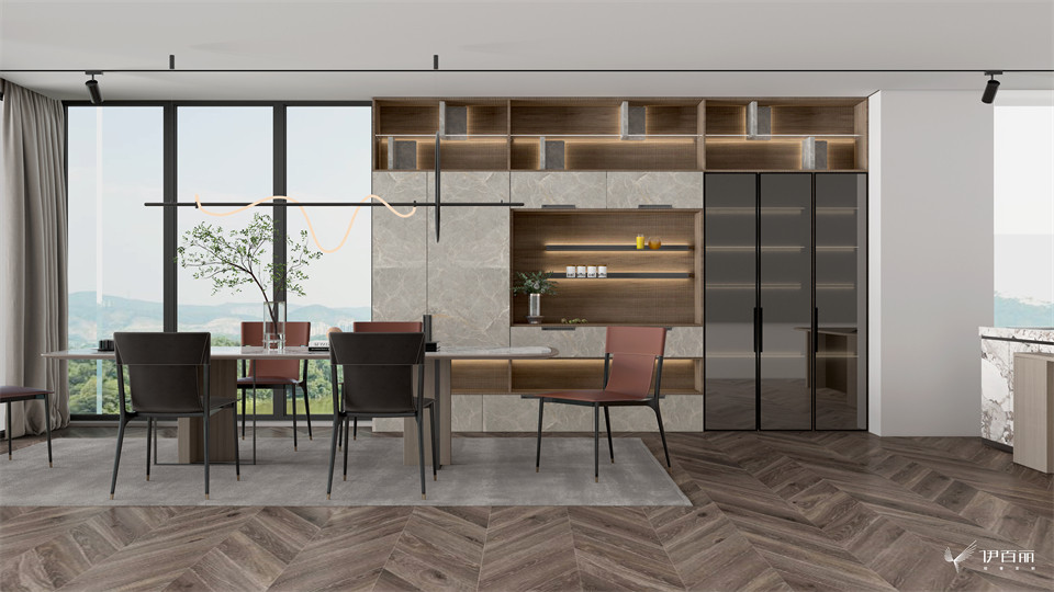 自帶高級感的鳳凰木帶來的溫潤質感,搭配膚啞UV岩板飾(shì)麵“銀(yín)龍玉”,共同營造高級且適用(yòng)的空間氛圍。木層板+層板(bǎn)燈工藝讓光影流轉(zhuǎn)在生(shēng)活的每(měi)寸空間(jiān),有意想不到的靈動空間效果。看似妙手偶得,實則如琢如磨!