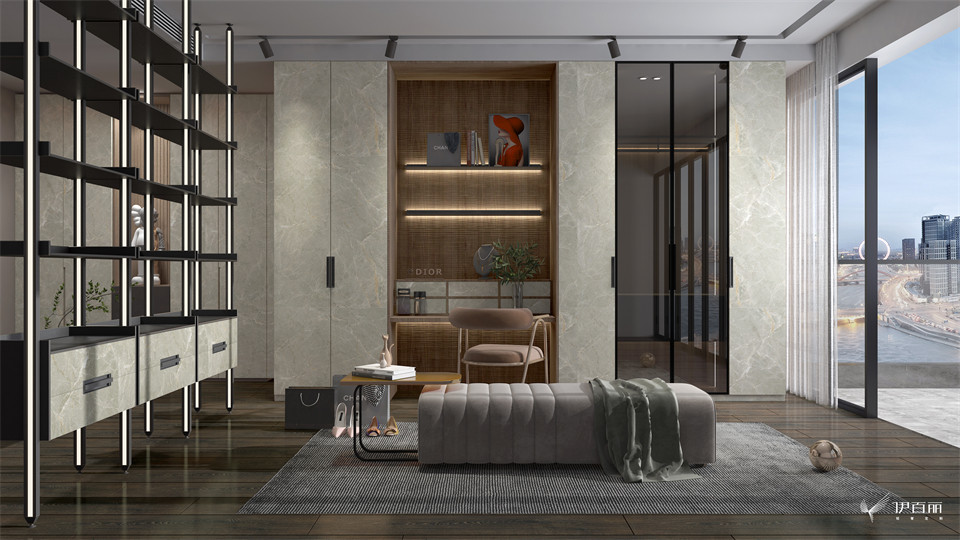 紋路清晰的鳳凰木與銀龍玉貫穿空間,配以赫拉旋轉推拉鏡+赫(hè)拉衣通(tōng),創造出直撩心底的優雅魔力,讓時(shí)尚、輕奢成為空間的一大亮點(diǎn),充滿儀式(shì)感和高級感。