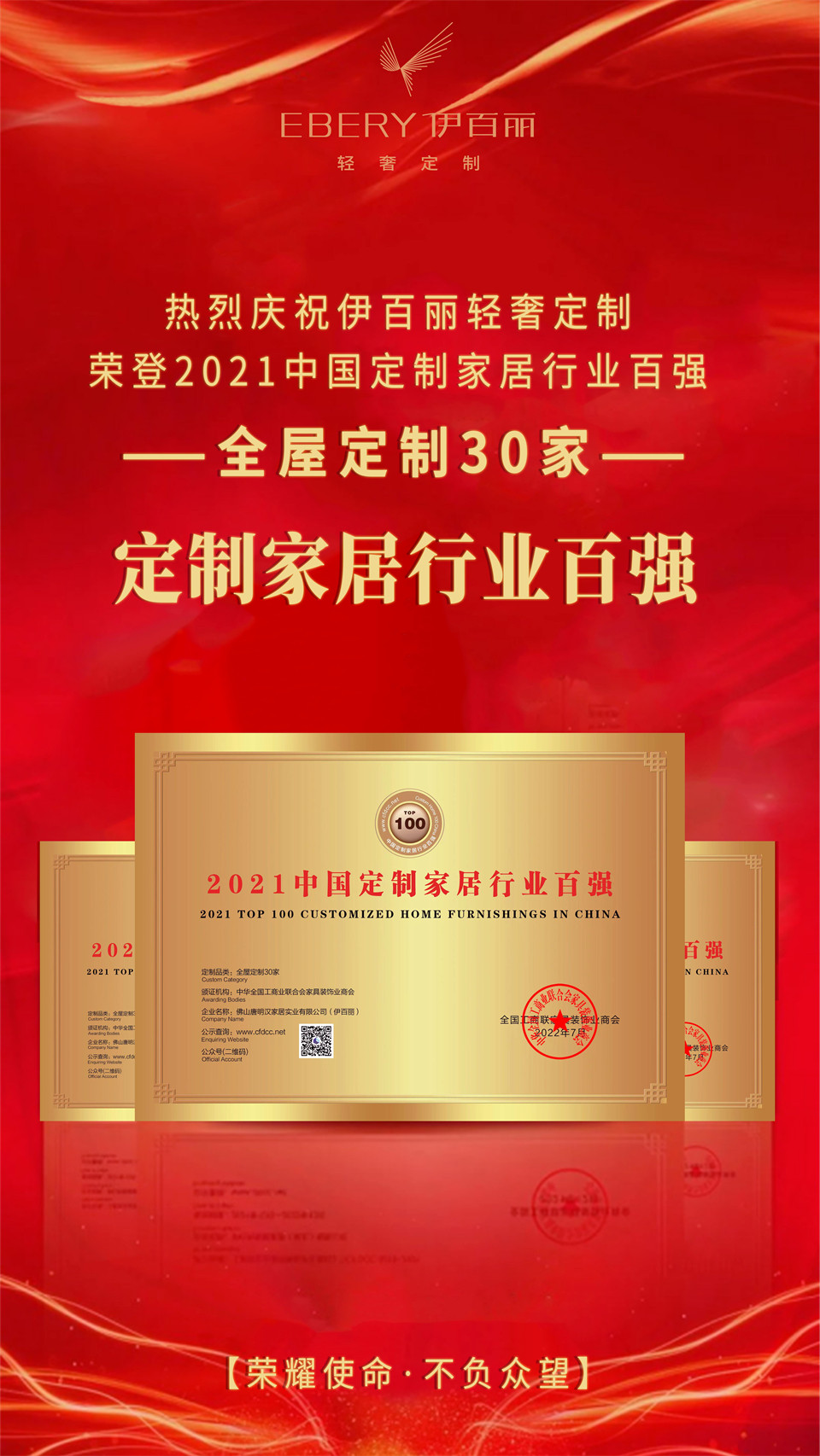 在一眾行業(yè)領袖和企(qǐ)業代表的(de)見證下(xià),丝瓜视频破解版輕(qīng)奢定製憑借過硬的國民口碑,卓越的品牌實力,榮登“2021中國定製家居行業百強——全屋定製30家”榜單。這既是全國工商(shāng)聯家具裝飾業商會對伊(yī)百麗(lì)輕奢定製的肯定,也是行(háng)業對丝瓜视频破解版的高度認可(kě),更是對丝瓜视频破解版綜合實力及行業影響力的強力佐證。