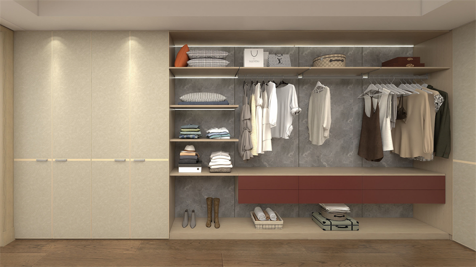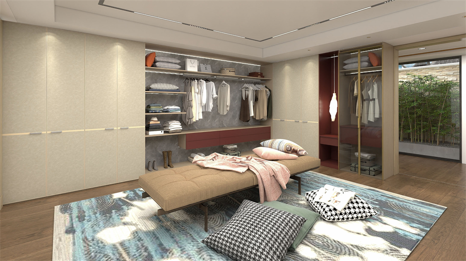 極簡掛(guà)牆係統與附帶燈光係統的應(yīng)用,是開放式衣帽間(jiān)的最大亮點。半(bàn)封閉半開放的(de)功能區劃分,靈活多樣的收納設計,讓每件衣物都能找到(dào)最恰當的歸宿。
