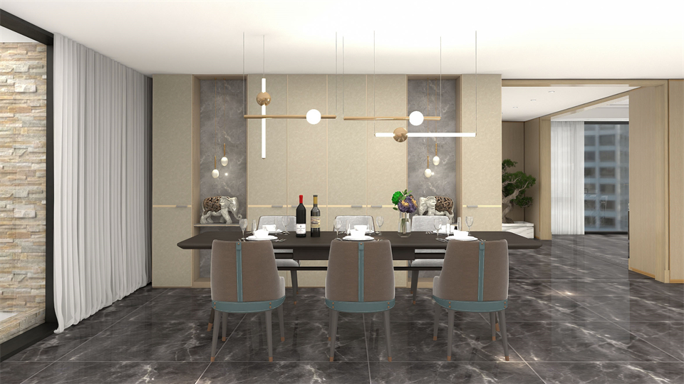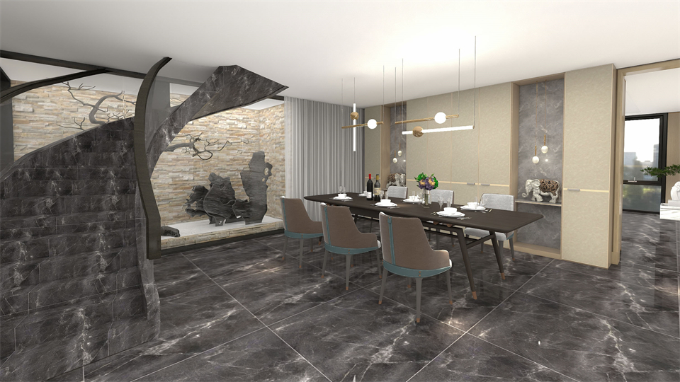 對稱式的櫃體布局讓空間井然有序,東方美(měi)學水(shuǐ)墨寫意背板(bǎn)的(de)融入,製造出亦真亦幻的沉浸體驗。任俗世紛雜,自繁華之中享受一個人的靜謐時光煎茶聲沸。