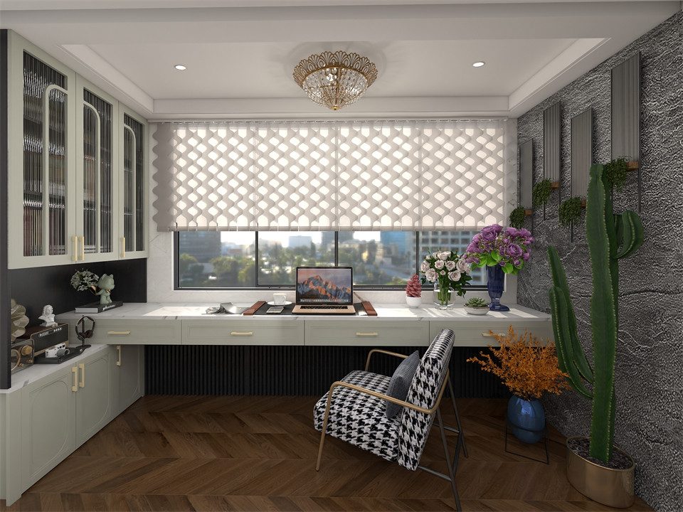 書房集收納、辦公、閱讀功能於一體,空(kōng)間氛圍表達更加豐富、和諧。EO100-子午灰門板搭配煙熏橡櫃身,以(yǐ)懸浮、穿插式設計,重塑空間維度,延伸生活象限的綺想。