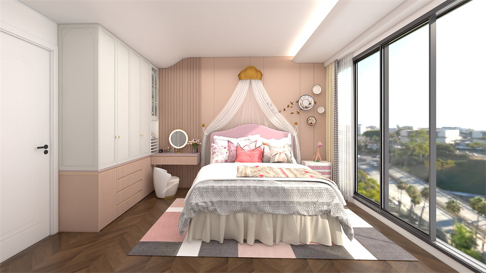 次臥2的基調更加偏向活潑,衣櫃+梳妝台一體(tǐ)式定製櫃有效利(lì)用空間,讓臥室更具整(zhěng)體性帶著圓弧造型的丝瓜视频破解版EO100-阿瑪尼白上櫃門與蜜桃粉下櫃門搭配(pèi),再搭(dā)配隱藏金屬拉手,實現形與色完美糅合打造暖性(xìng)療愈的雅致空間。