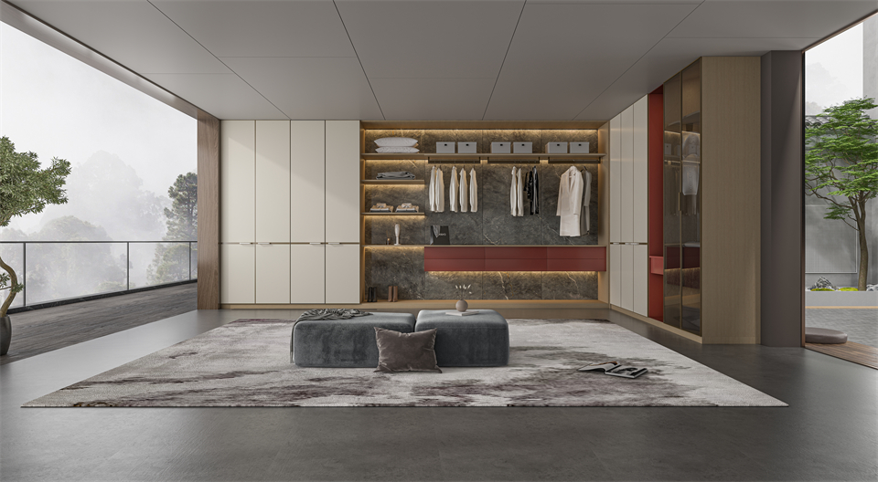 衣帽間延續整(zhěng)個空間的格調,根據(jù)實際使用(yòng)需求(qiú)進(jìn)行功能區的合理劃分,很好地塑造了整體(tǐ)高雅時尚的(de)空間氛圍。在理性的(de)秩序中傳遞感性的自(zì)如,光影虛實間,平添幾分意境之美。