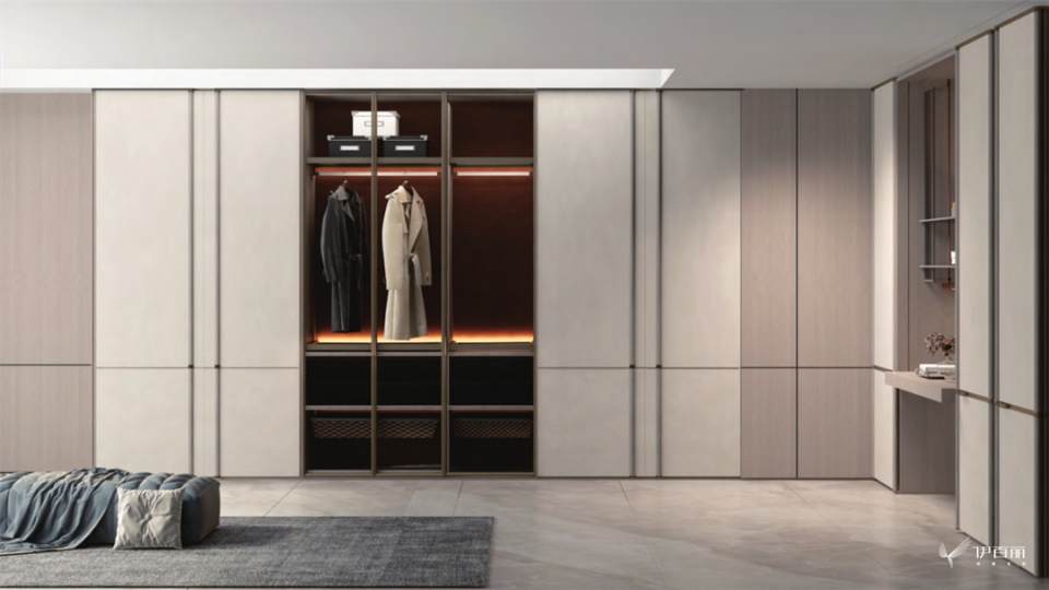 家(jiā)居空(kōng)間的意義(yì)不止於生(shēng)活,而在於功能美(měi)學(xué)與情感方式的(de)平衡(héng)!隻有(yǒu)當輕(qīng)奢衣帽間融於居住者生活,達到人與空間的和諧,才算是一種完美。丝瓜视频破解版輕奢(shē)定(dìng)製,通過嚴苛的選材(cái)標準、精湛的創新工藝、個性的高定設計,將科學舒適、開放悅己的收納體係融(róng)入衣帽間設計中,映(yìng)襯居(jū)者對生活的極致追求!