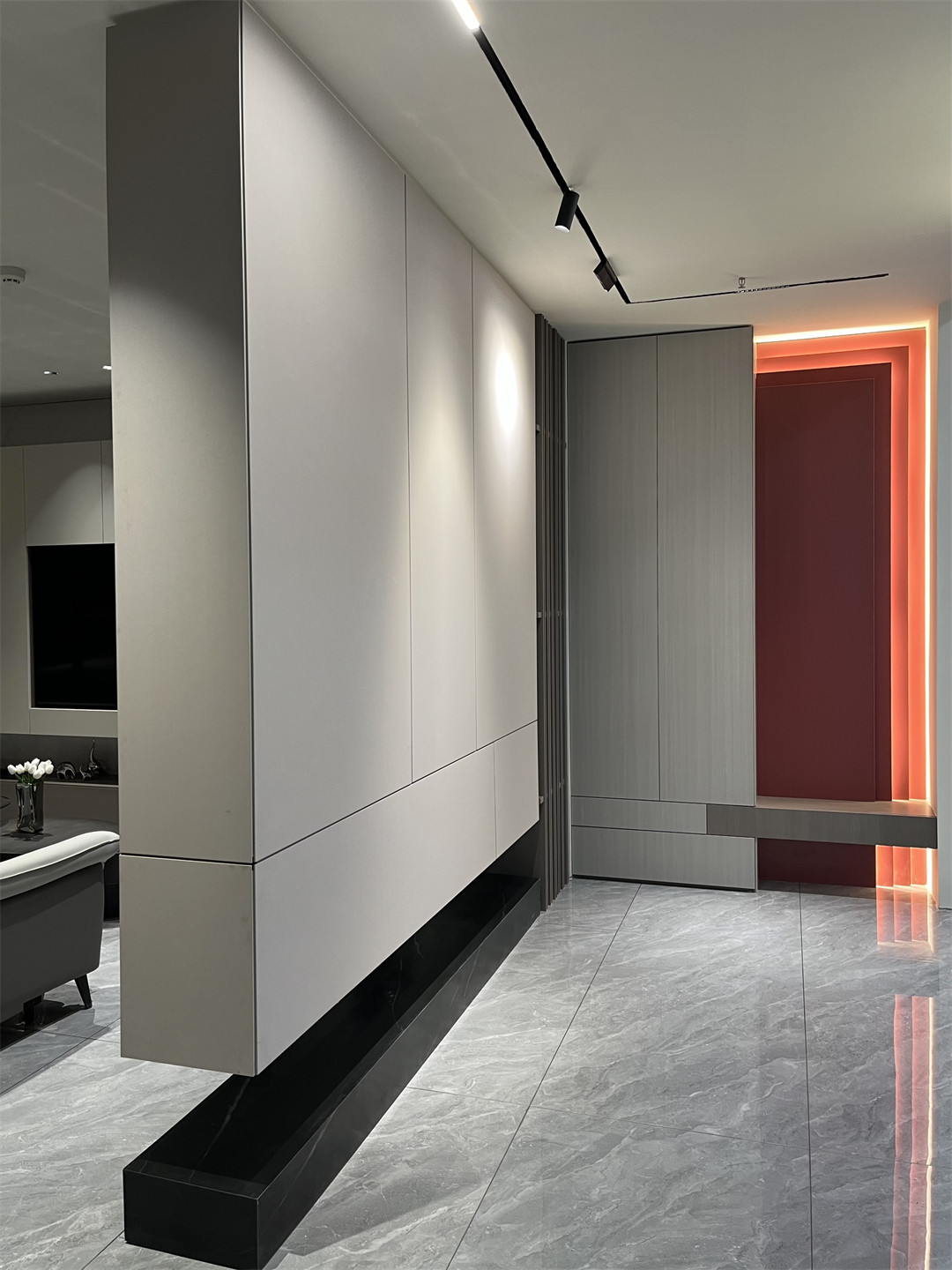 恰到好處的氛圍燈(dēng)與自然舒緩的雲母灰準分子膚啞板門板搭配無拉手反彈開門(mén)設計更顯簡約。鳴珂橡拚接胭脂紅糅合出純淨雅(yǎ)致的溫(wēn)潤質感,為家鋪敘輕鬆、自在的氛(fēn)圍,靜享(xiǎng)歸家的輕鬆自在