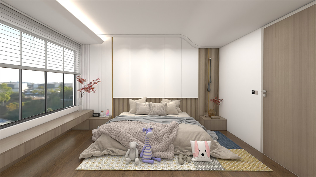 女(nǚ)兒房的設計以白色亮光板為(wéi)主調,搭配(pèi)白櫟橡格柵背板,營造出(chū)明快、童趣的氛圍感。量身定製的衣櫃、懸空窗邊櫃和搭階床頭櫃,一舉滿足了孩子的衣物、玩具收納和(hé)展示需求,目光所及每一寸都能體(tǐ)現父母對女兒濃厚的愛意。