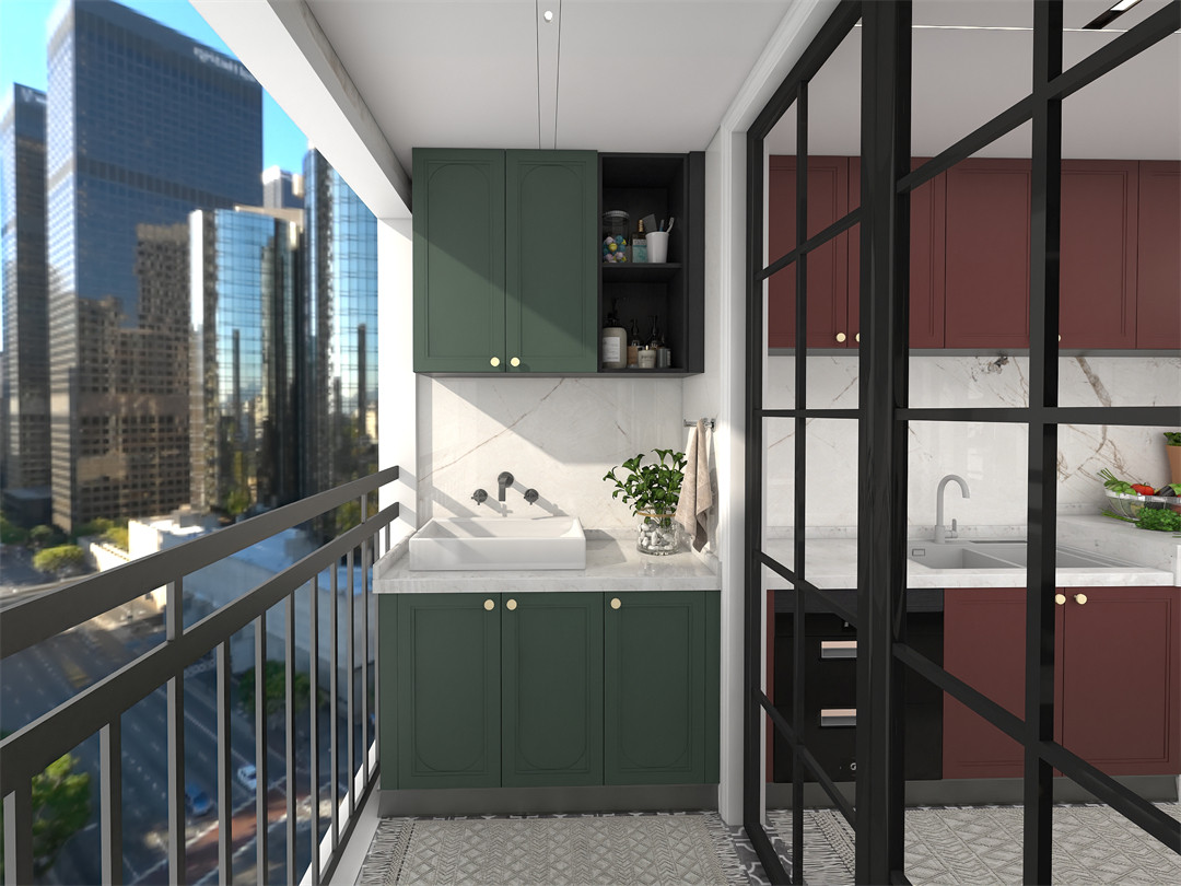 一門到頂的EO100-橄欖綠封閉式(shì)櫃(guì),收納清潔用(yòng)品和(hé)吸塵器、淨化器等小家電,方便又極具秩序(xù),已然多(duō)出一個雜物間。另一側煙熏橡搭配神秘而深邃(suì)的EO100-橄欖綠,在色彩美學中交織輝映,盡顯空間的幹淨(jìng)利落之美(měi)。